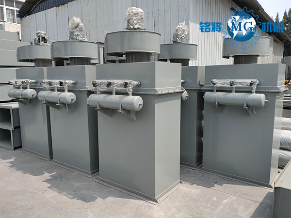 含塵氣體進(jìn)入進(jìn)氣口進(jìn)入下箱后,部分沉降,輕微粉塵浮動時被濾袋阻留,凈化空氣透過濾袋,經(jīng)文氏管進(jìn)入上箱體,從出氣口排出。積附在濾袋外壁的粉塵不斷增加,當(dāng)阻力在限定(一般為80-120毫米水柱)的范圍內(nèi),就要清除積附在過濾外壁的粉塵,清灰是由控制儀定期順序觸發(fā)各控制閥,開啟脈沖閥,使氣包內(nèi)的壓縮空氣由噴吹管孔噴出(一次風(fēng))通過文氏管誘導(dǎo)數(shù)倍于一次風(fēng)的周圍空氣(二次風(fēng))進(jìn)入濾袋,使濾袋在一瞬間急劇膨脹并伴隨著氣流的反向作用,被抖落地粉塵落入灰門經(jīng)排灰閥排出機(jī)體。